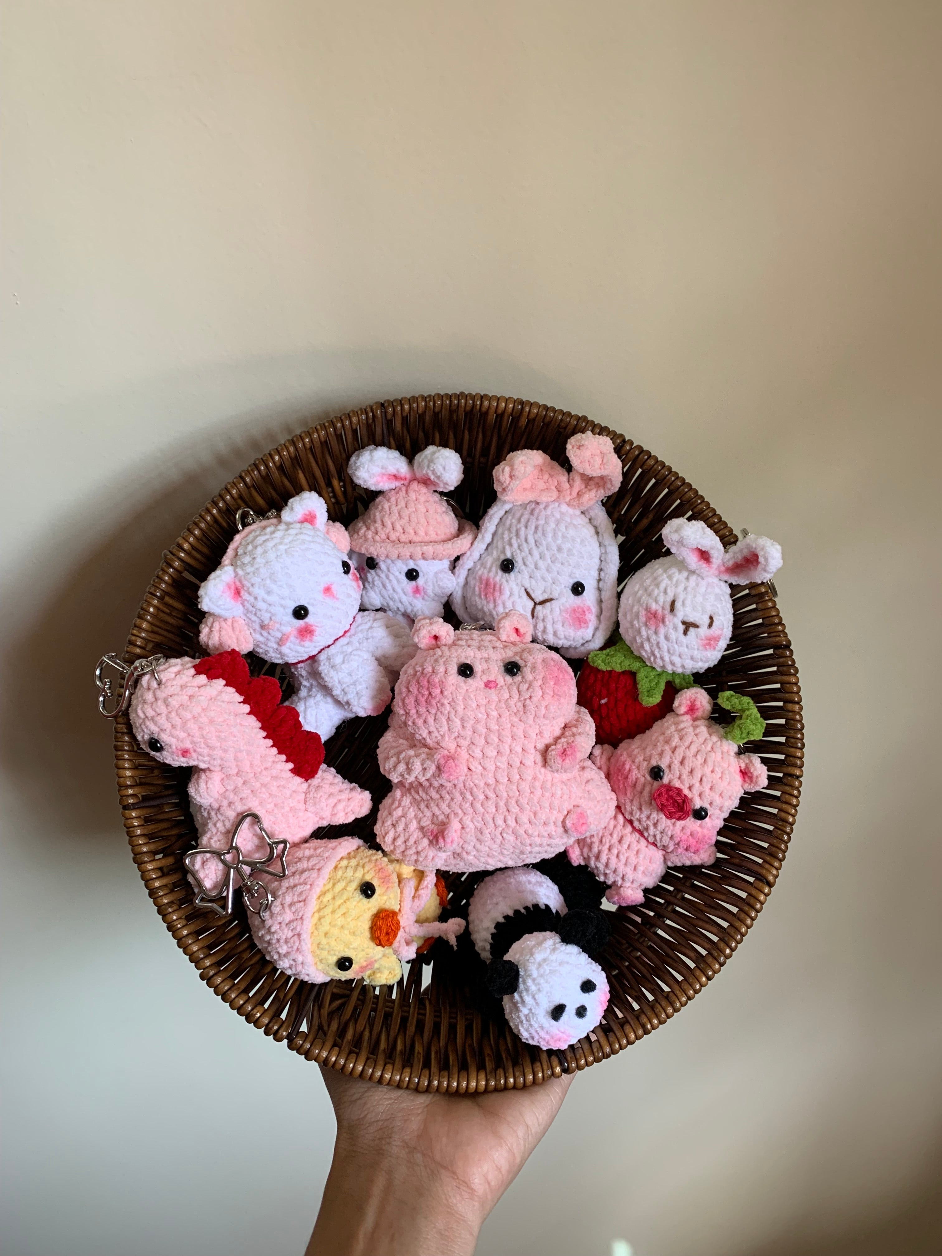 Bow-Tie Bunny With Tulip Plushie Keychain